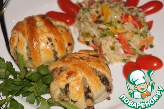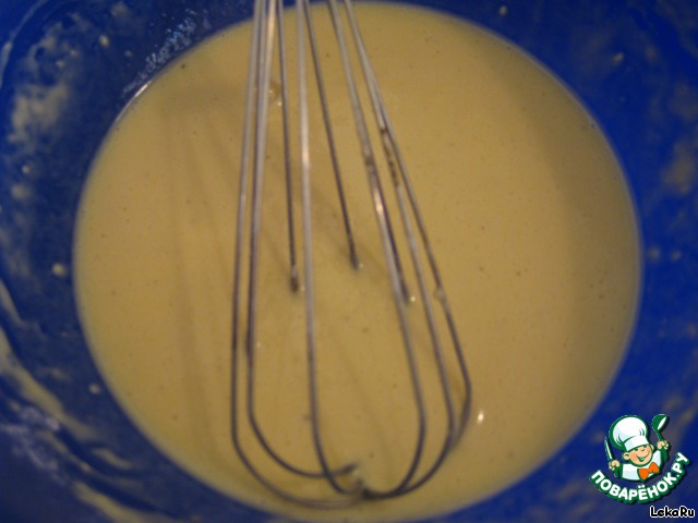 Из яиц, молока, муки, соли и соды гашен. замесить жидкое тесто, как на обычные блинчики