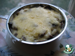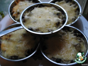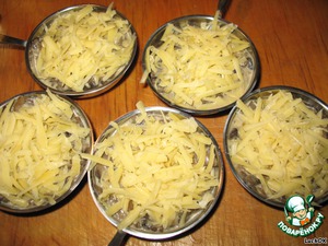 Сверху в каждую кокотницу положить по небольшой кучке тертого сыра.