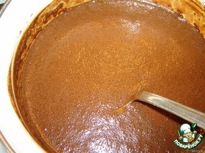 А чтобы не терять время, пока жарится очередной блин, размешиваем какао с оставшимся сахаром и молоком. Ставим на огонь и, помешивая, доводим до кипения. (Свободной рукой переворачиваем блин :-) ). Добавляем масло и 1 ст. ложку муки и даем покипеть на медленном огне минутку, пока не загустеет. Не забываем про блины! Приблизительно 1 ст. л. шоколадной смеси откладываем в сторонку.
