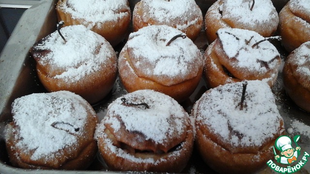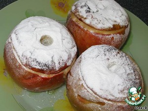Готовые яблоки посыпать сахарной пудрой, подавать остывшими.