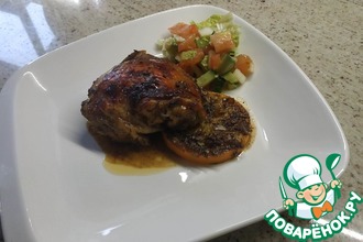 Уложить в форму для запекания слоями.1-баклаж. 2- курица.
