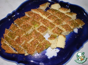 Выливаем наше тесто в форму и сверху посыпаем кокосовой стружкой (у меня была зелёного цвета).Ставим в разогретую до 180*С духовку.Готовность проверяем спичкой.