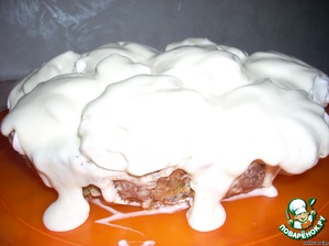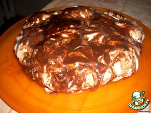 Сверху заливаем глазурью, приготовленной из масла, молока, сахара и какао.