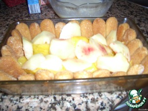 Чистим фрукты, режем на большие куски и укладываем их в середину формы