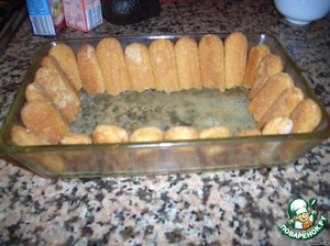Готовим форму. Обильно смазываем ее сливочным маслом. Обмакиваем каждую бисквитную палочку в анисовом ликере, ломаем пополам и делаем бортик