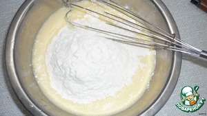 Взбить яйца, добавить соду, ванилин и муку.