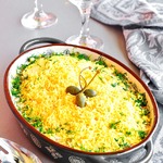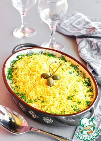 Описание: Я долго думала, давать этот рецепт «Мимозы» или нет, потому что рецептов этого салата огромное множество, разных, интересных… И, все-таки, многие салаты не похожи на настоящую «Мимозу», т. к. ингредиенты (и только эти!) этого салата в строгой пропорции. Картофель и морковь должны быть средними по величине, кол-во яиц должно быть равным (!) по кол-ву картофеля (так же, как и для настоящего «Оливье»), майонеза ровно 250 г (ни больше, ни меньше) и обязательно лук, но зеленый. Рецепт этого салата у меня давно, он проверенный годами, очень вкусный, нежный, гостям нравится безумно. Этот рецепт мне подарил друг, повар-кулинар от Бога! Попробуйте этот салат!