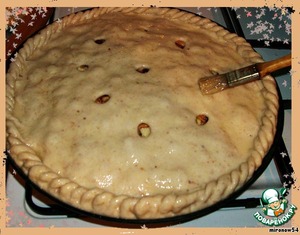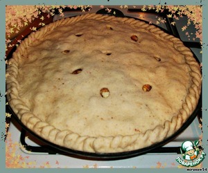 Раскатываем пласт теста по размерам верха пирога, делаем в нем отверстия диаметром 1см. Все это должно быть приготовлено до смешивания компонентов будущей начинки