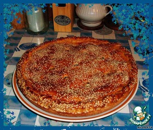 Обильно посыпаем верх пирога кунжутом, а кому нравится можно орешками…