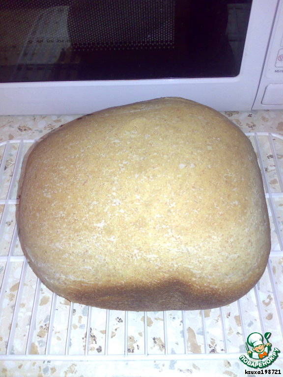 Все ингредиенты закладываем в чашу хлебопечки в нужном порядке. Режим "Основной". Цвет корочки - средний. ВЕС БУХАНОЧКИ - 1кг 200 г.
