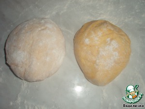 По поводу приправ.Делим на две части тесто.Одну оставляем БЕЛОЙ,а в ДРУГУЮ добавляем и куркуму,и паприку.