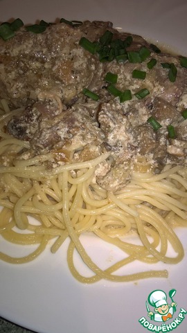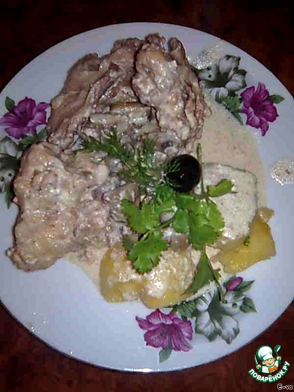 Даже не знаю описать вкус этого блюда. Гости сказали, что можно проглотить язык. Действительно получилось нежное мясо с насыщенным вкусом. Сразу хочу сказать, что калорийно. Но от этого блюда мои гости получили удовольствие. Мне было очень приятно слышать от них «м-м-м как же вкусно!» и видеть, как они, с явным удовольствием, забыв о приличии, облизывают пальцы.