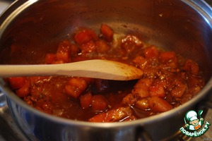 В пряную смесь добавить помидоры, нарезанные кубиками. Тушить около 1 минуты, время от времени помешивая.