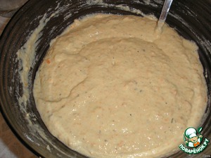 Постепенно всыпая муку, делаем тесто, как на оладьи.