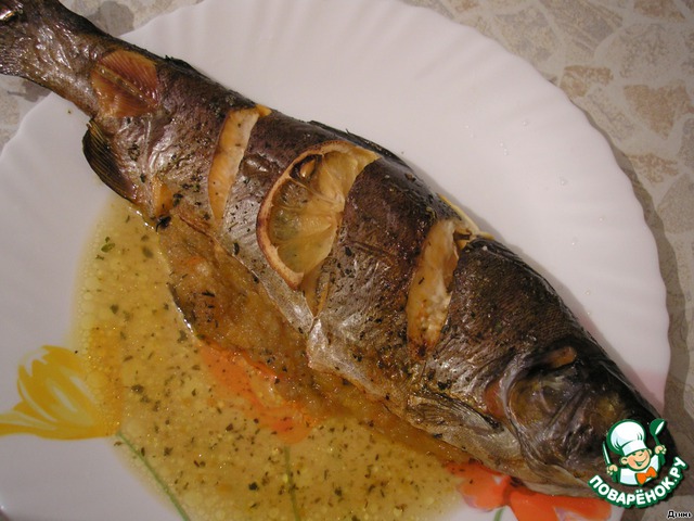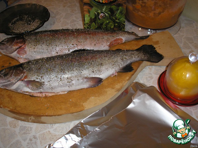 Готовую рыбу натираем солью, свежемолотым перцем и смесью итальянских трав, сбрызгиваем лимонным соком. Оставляем мариноваться минут на 30.