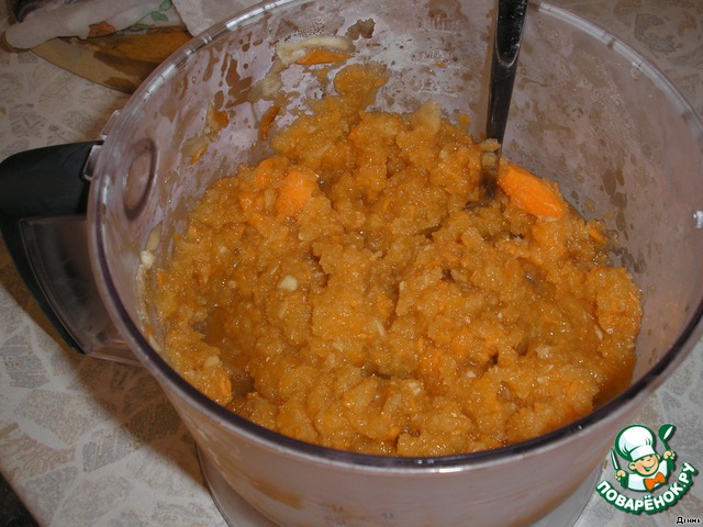 В блендере измельчаем кабачок и морковку, солим-перчим и эту смесь закладываем в рыбу.