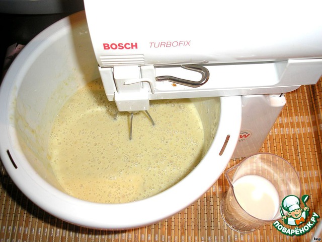Смесь перемешать и тщательно взбить миксером