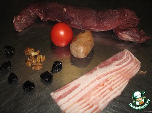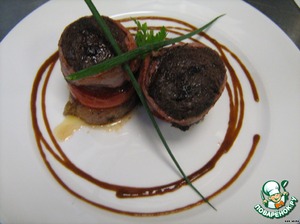 Нежные медальоны из говядины, фаршированные черносливом и грецкими орехами, с тонким ароматом подкопчeного бекона.