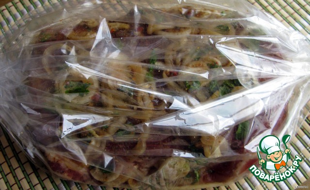Помещаем в рукав для запекания и запекаем в духовом шкафу около 1 часа. Мяско получается сочным и вкусным. Приятного аппетита!