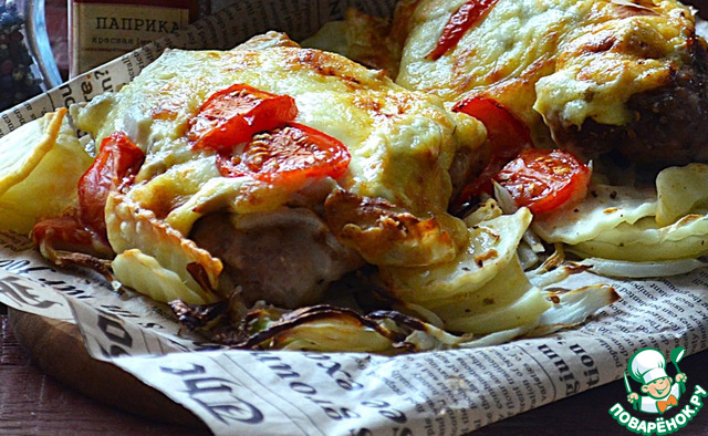 Рецепт «Мясо под сыром с картофелем "По-французски"»: