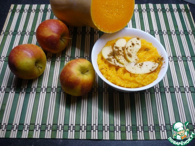 Затем размять в пюре. Тыквенно-яблочное пюре добавить к каше, заправить медом и сливочным маслом, перемешать, дать настояться минут 10.