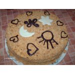 ), можно вырезать из картона сердце, например, или мордочку мишки для малышей. Обводить и вырезать потом коржи по этой картонной форме. Картон берите глянцевый или смазать маслом надо, чтобы не прилип к тесту.