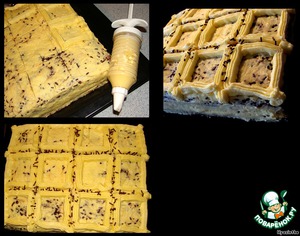 Теперь кондитерским шприцем рисуем квадраты по всей поверхности торта.
