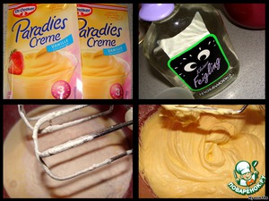 просто смешиваем сливки, 100 мл водки и крем-порошок ванильный "Парадиз" - все взбиваем 3 минуты - крем готов.