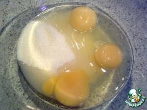 Яйца, сахар и ванильный сахар взбить венчиком (или вилкой)