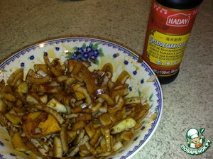 Лук нарезать и замариновать в соевом соусе на 15 минут