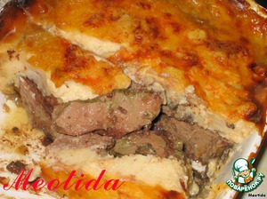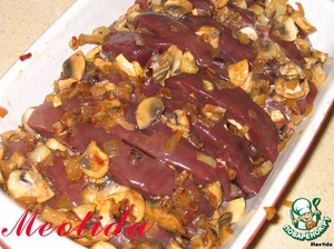 Готовила из размороженной полностью печени. Вышло просто чуть больше запары, ну и 2 "этажа" печенки, отдельно проложенной грибами с лучком и промазанной соусом. Потому что надо не сначала размораживать, а потом искать рецепт, а рецептиться заранее