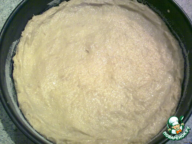 Охлажденное тесто выложить в форму, распределив по всей поверхности и сделав небольшое бортик. Можно притрусить тесто мукой (я не делала)