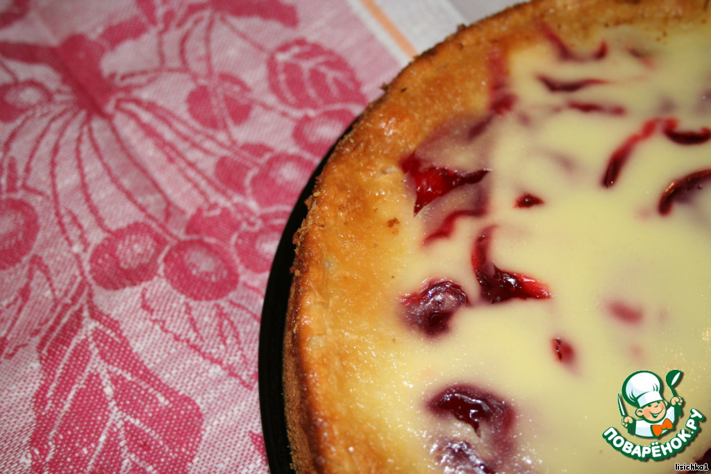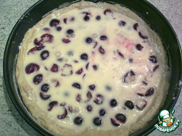 Великолепный пирог со свежей вишней и нежным молочным суфле. Рецепт взяла из кулинарного журнала, за что автору большое спасибо. Этот пирог можно приготовить и с другими ягодами. Угощайтесь