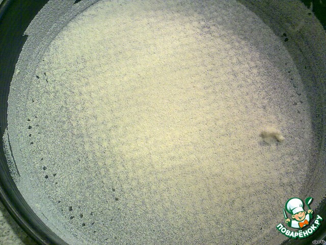 Разъемную форму для выпечки диаметром 26 см смазать маслом и посыпать манкой тонким слоем