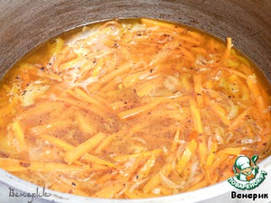 Необходимо всё время следить, чтобы овощи не прилипали ко дну и стенкам казана. -