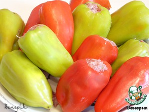 Когда наш плов будет готов, достаём сначала перцы и чеснок в отдельную тарелку.