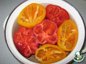 Готовые разноцветные перчики выкладываем в глубокое блюдо