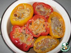 Рецепт «Разноцветные фаршированные перцы с орехами»: