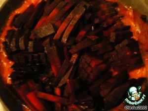 Свеклу очистить, нарезать соломкой и соединить с пассерованными овощами.