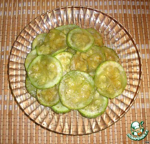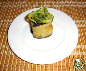 Кабачок нарезать тонкими кружочками, посолить и поперчить. То и другое по отдельности обжарить в масле и просушить на бумажном полотенце.