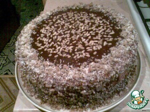 Смешать кокосовую стружку с оставшейся крошкой, обсыпать бока и край верха торта.
