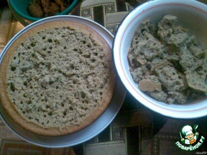 Корж вынуть (он должен получиться пористым, слегка с фиолетовым оттенком) и срезать верхушку для крошки. -