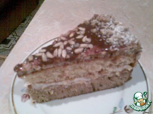 Очень понравился детям верх тортика - застывшее крем-суфле со смородиновой крошкой, облитой шоколадной глазурью, присыпанной жареными семечками.