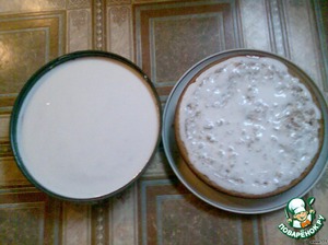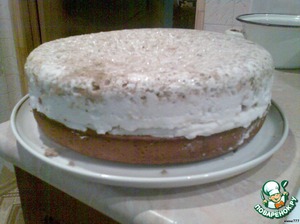 Сверху положить корж №2 - пропитать, промазать кремом и соединить с уже пропитанным и промазанным первым коржом.