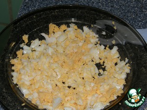 Яйца отвариваем и измельчаем, я это сделала вилкой :-)
