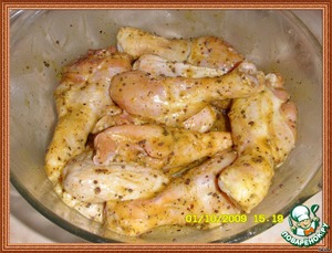 Намазать куриные бедрышки и оставить мариноваться на 20 минут.