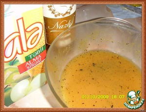 Смешать специи: растительное масло, мед, обе горчицы, соль, травы, фенхель, перец и сок лимона.