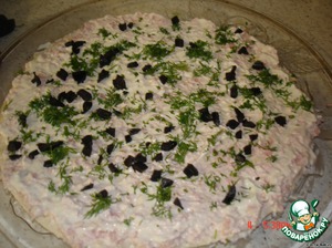 присыпать зеленью и порезанной маслинкой -