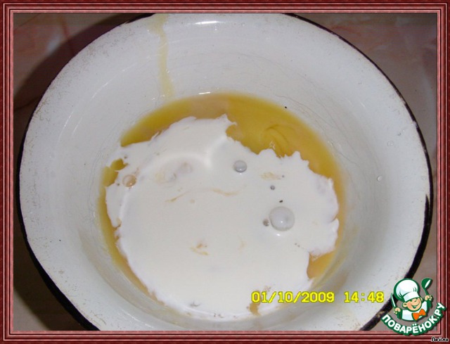 Яйца разделить. Смешать желтки, творог, йогурт... -