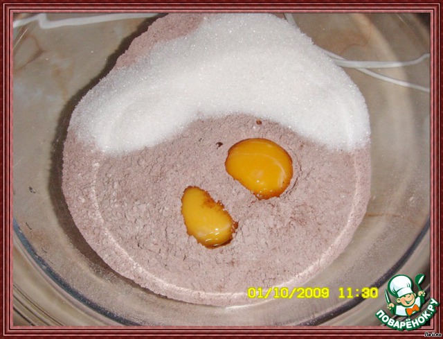 Тесто. Все ингредиенты смешать, замесить гладкое тесто. Завернуть в пленку и положить в холодильник на 30 минут.